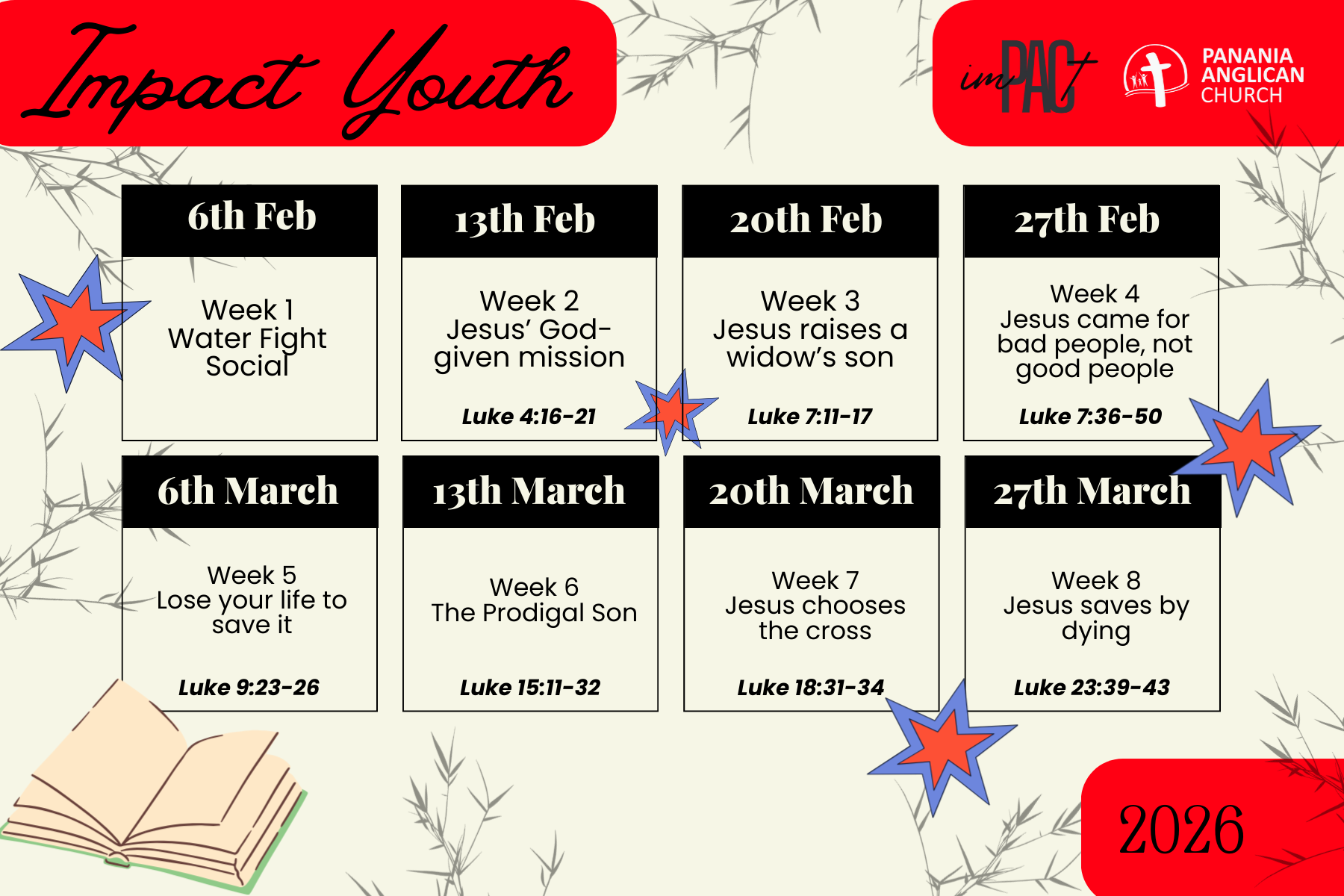 IMPACT is a youth group for high school-aged people that meets every Friday night to learn about Jesus, help each other follow him and tell our friends about him.